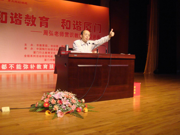 厦门广大家长对家庭教育知识的渴望越来越强,可是如何做个好家长,怎样做才能使自己的孩子能够健康地成长,许多家长感到困惑。中央教科所特聘专家、我国赏识教育创始人周弘在新年的第二个星期六,在一中景行厅为我市部分家长、校长、老师上了一堂生动感人的“和谐教育、和谐厦门”赏识教育专题报告会。这场报告会,是由市妇联、市教育局、团市委主办、行知教育研究会具体策划承办的,吸引了上千名家长前来听课。