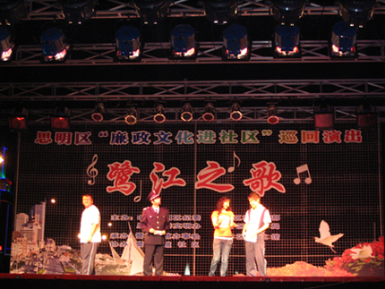 10月29日晚 由思明区纪委、宣传部、文明办、文体局、妇联和鹭江街道联合主办、鹭江道社区协办的“廉政文化进社区”文艺巡演在鹭江道客运码头广场举行。思明区、鹭江街道有关领导带领街道、社区、党员、干部、群众600多人到会观看讴歌新时期勤廉兼优的基层党员和干部的先进事迹等优秀节目,接受一次以廉为荣、以贪为耻的生动教育,推动了廉政文化进社区、进家庭开展。( 鹭江街道妇联)