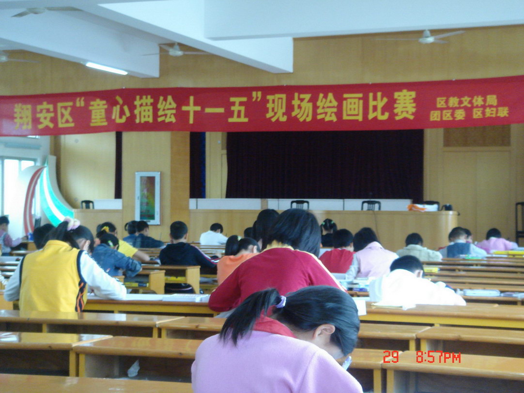 为庆祝“六一”国际儿童节,5月30日上午,翔安区妇联在新店中学大会场举行“童心描绘十一五”主题绘画现场比赛,现场作画比赛分幼儿组、小学组。来自全区幼儿园、小学共80名幼儿、儿童参加比赛。区委常委副书记黄奋强、区人大常委会副主任颜文箭、区政府副区长齐晓玲、区妇联主席洪允治等领导亲临比赛现场进行观摩指导。